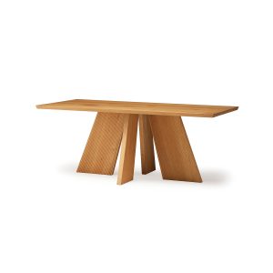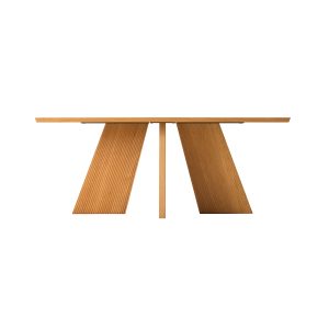 The main characteristic of this table is its wide legs, with a wavelike groove pattern inspired by the look of traditional hakama pants. As the legs extend toward the ground, the grooves are carved in a way that causes the legs to seem to fan outwards. This unique form naturally expresses the hakama motif and gives a dignified, strong look to the design. The bench matches well when paired with the table, but also has a striking presence on its own and leaves a strong impression when placed in large spaces such as hallways. This collection pairs exceptionally well with our Challenge chairs.